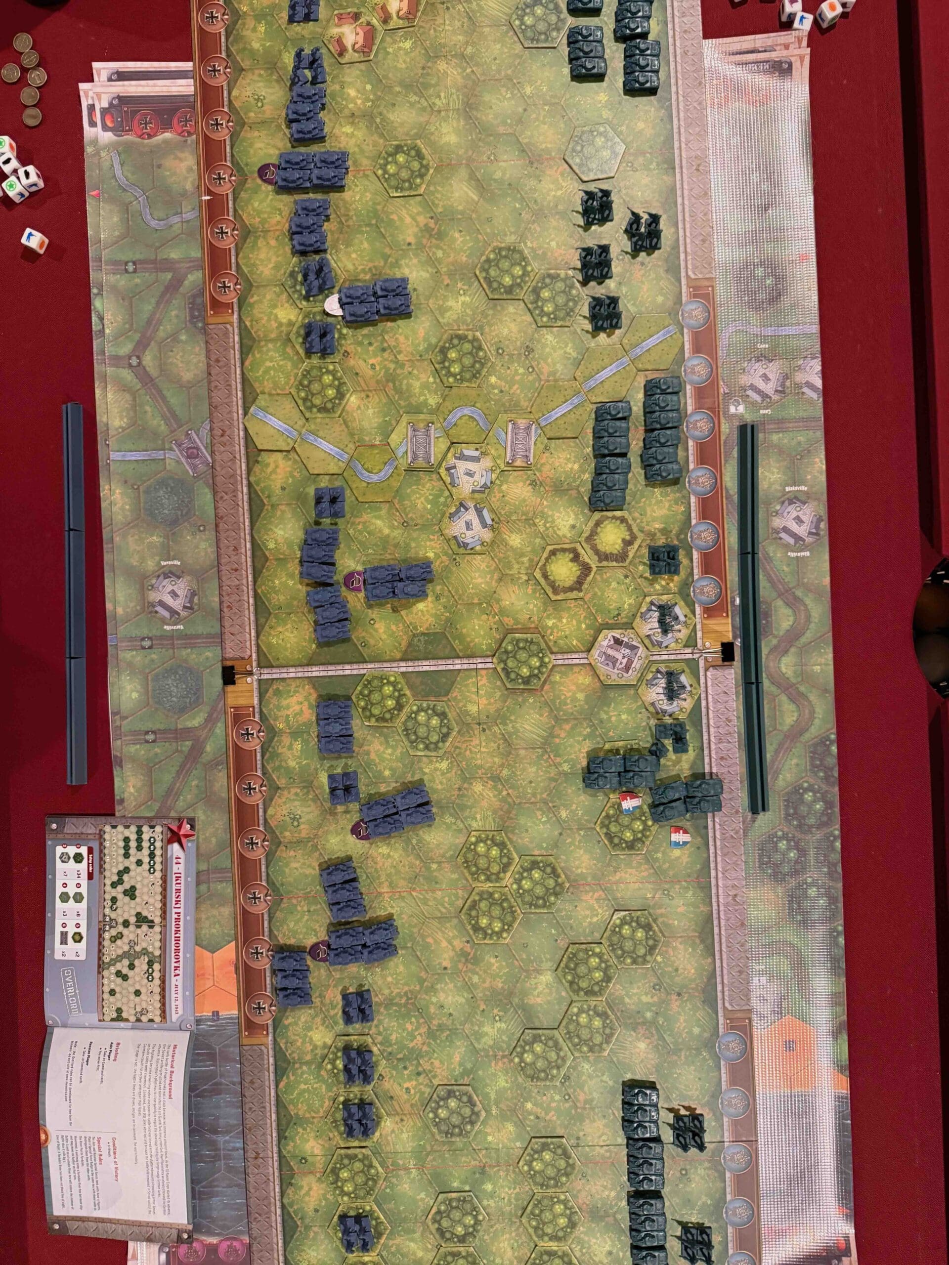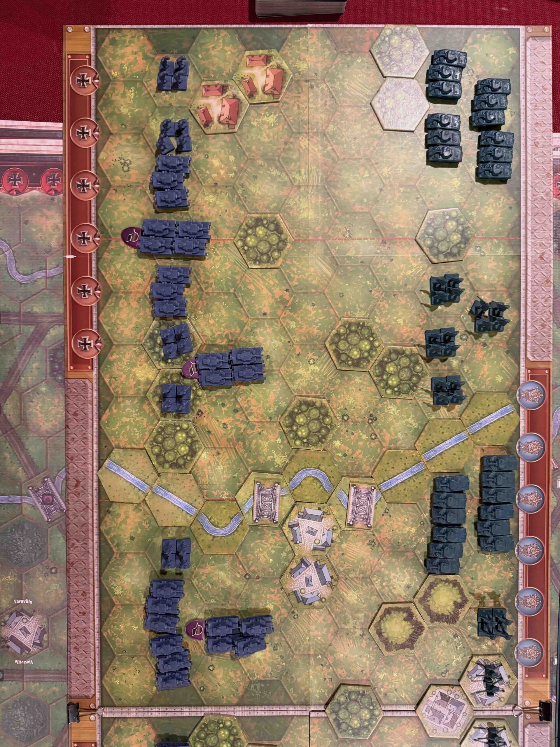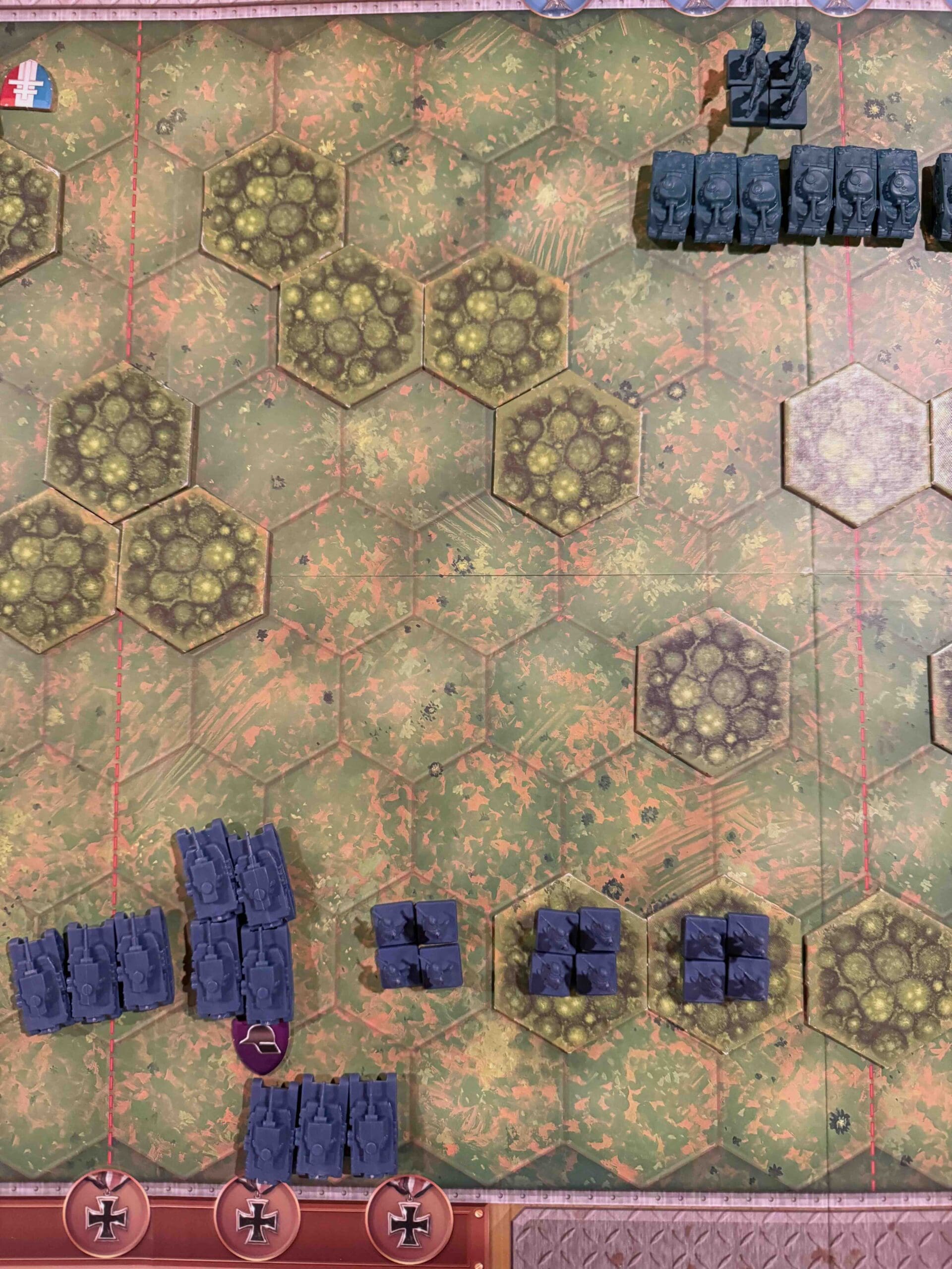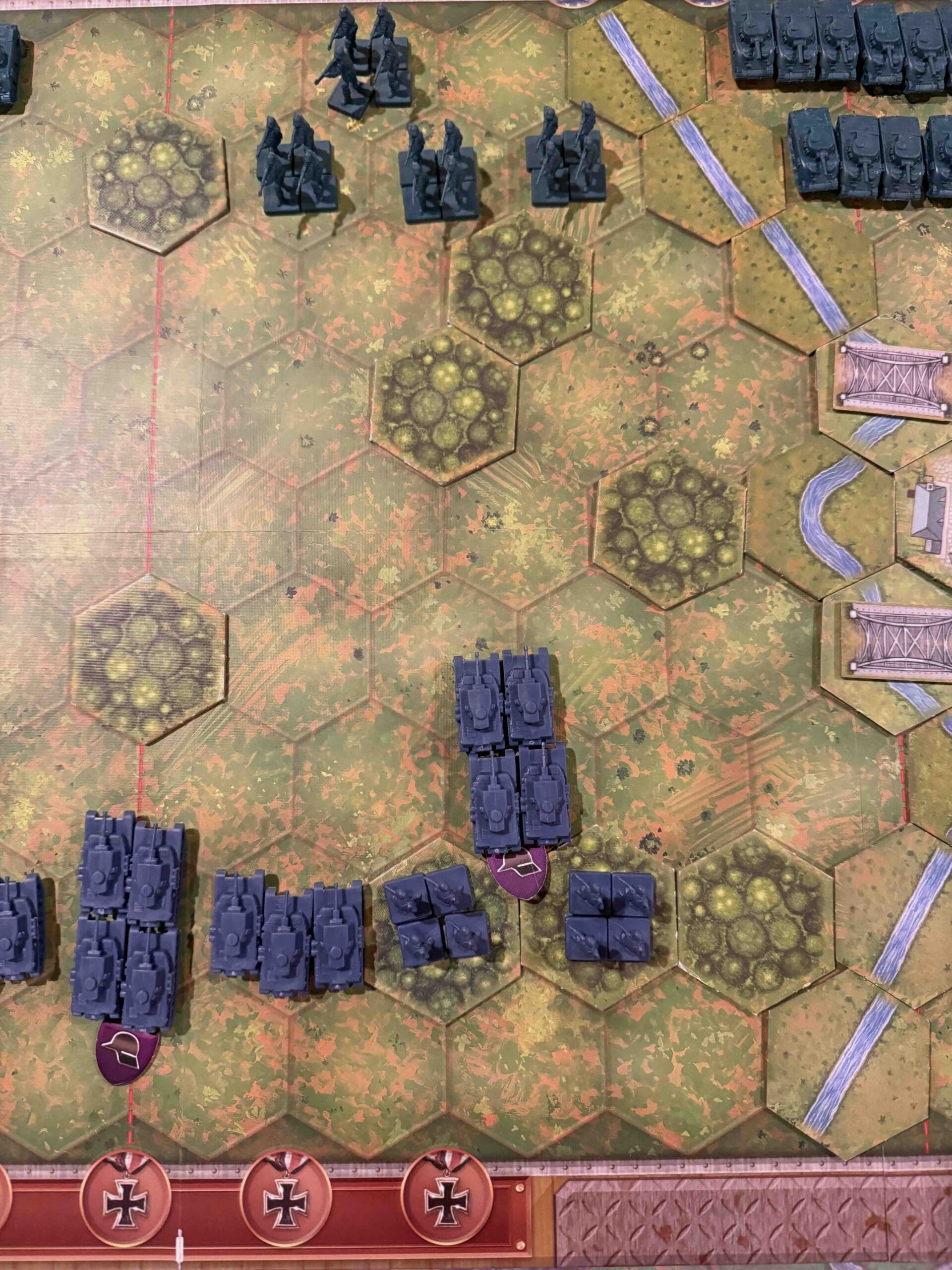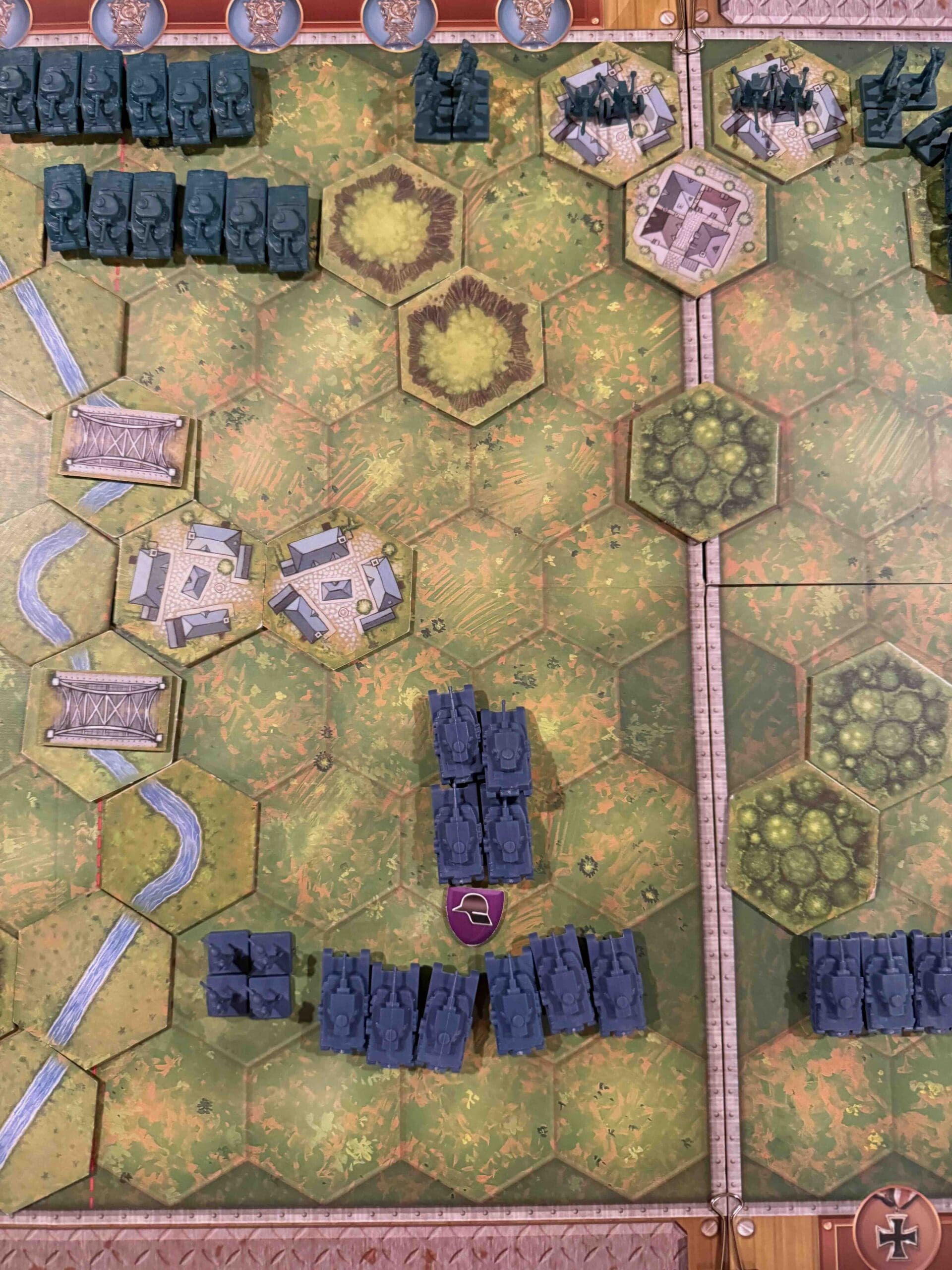 1. This is primarily a defensive scenario for the Axis. You need to engage the enemy, but if you attempt to battle the massive armor forces out in the open, your forces will get decimated.