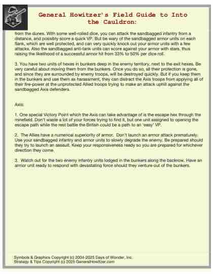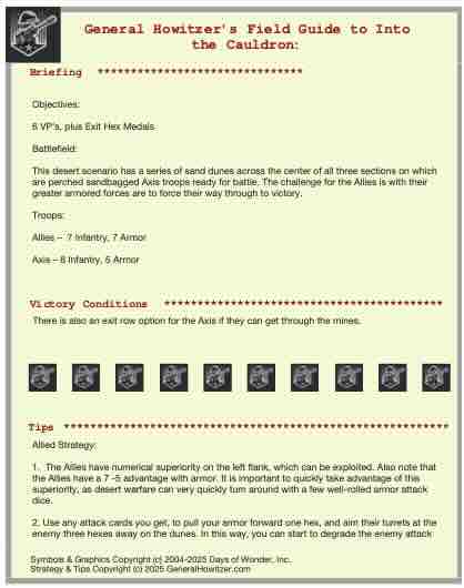 Enhance your Memoir ’44 experience with a scenario guide designed to elevate every battle you play. Each guide delivers a clear historical snapshot, streamlined briefings, detailed battlefield analysis, and step-by-step strategy tips for both sides—giving players a deeper understanding of the scenario’s terrain, objectives, and tactical opportunities.