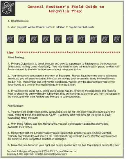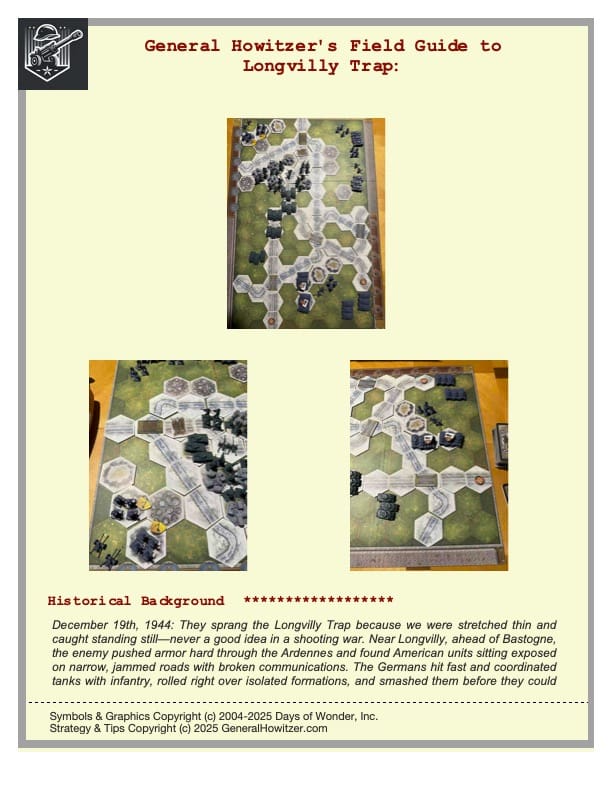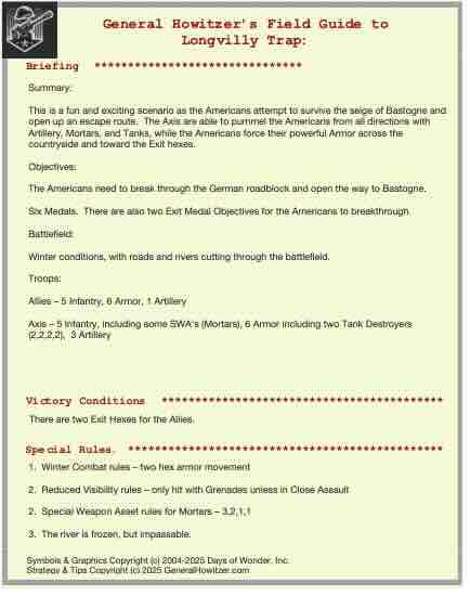 Enhance your Memoir ’44 experience with a scenario guide designed to elevate every battle you play. Each guide delivers a clear historical snapshot, streamlined briefings, detailed battlefield analysis, and step-by-step strategy tips for both sides—giving players a deeper understanding of the scenario’s terrain, objectives, and tactical opportunities.