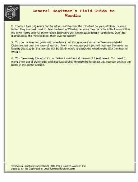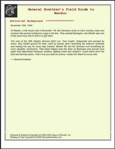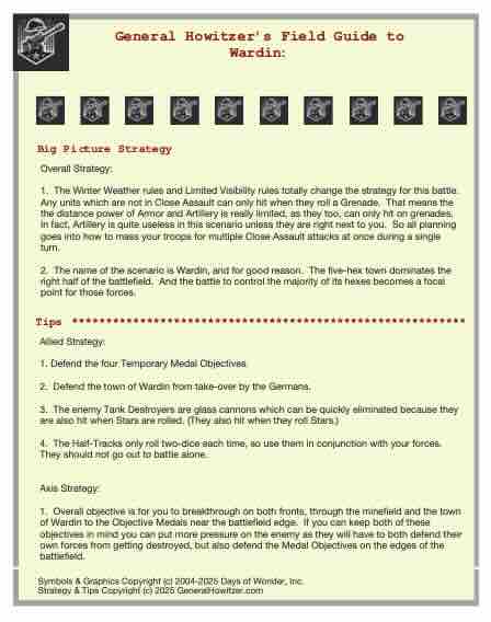 Enhance your Memoir ’44 experience with a scenario guide designed to elevate every battle you play. Each guide delivers a clear historical snapshot, streamlined briefings, detailed battlefield analysis, and step-by-step strategy tips for both sides—giving players a deeper understanding of the scenario’s terrain, objectives, and tactical opportunities.