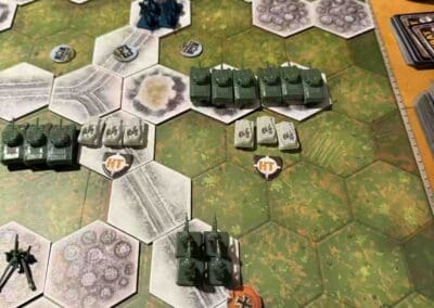 1. Big Picture strategy is that your forces begin in disarray. You need to consolidate your forces, and coordinate your efforts. The Allies begin with control of two-thirds of the battlefield. They are protected by hedgerows, towns, and hills. You will need to develop a strategy to attack those units one by one with concentrated firepower until each one is eliminated.
